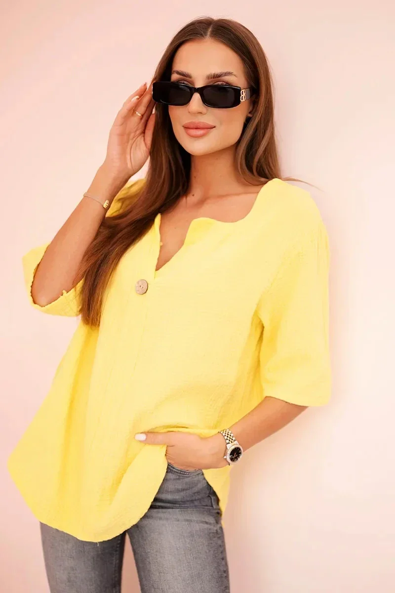 Dámská mušelínová košile s knoflíkem žlutý