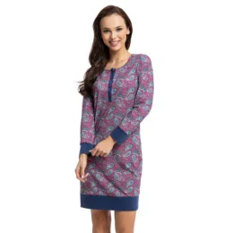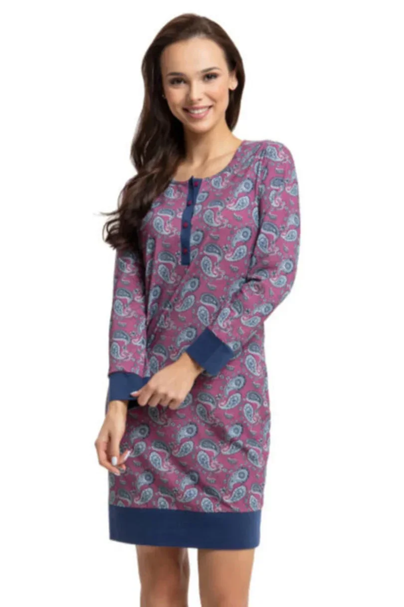 Dámská noční košile, která je vyrobená z tkaniny s květinovým rostlinným vzorem v módním barevném provedení.