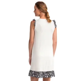 Dámská noční košile s květovým motivem kolem ramen a ve spodním okraji pro pohodu a sladký spánek. Košilka je vyrobena z popelinu a z vysoce kvalitního Micro-modalu s příměsí pružného Elastanu. Popelín je odolnou, pevnou, ale zároveň měkkou a na dotek příjemnou tkaninou, zatímco luxusní přírodní Micro-modal poskytuje vyjímečnou lehkost a pohodlí, je prodyšný, dobře absorbuje pot a rychle schne.