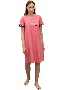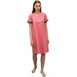 Pohodlná dámská noční košile pro sladké spaní i pro krásu. Košilka má kulatý výstřih a je ozdobena lemováním na rukávu. Přední strana košilky je ozdobena něžným potiskem. Tato dámská košilka je vyrobena z vysoce kvalitní kombinace, geneticky nemodifikované řecké bavlny a elastanu. Toto spojení zajistí vysoké pohodlí, příjemný pocit na dotek, prodyšnost, pružnost a odolnost. Délka noční košile je 95 cm.