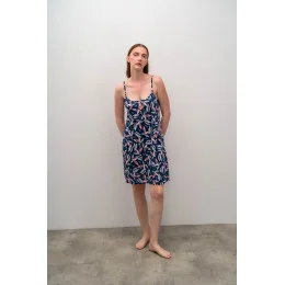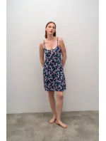 Dámská noční košile na ramínka, kruhový výstřih, u krku ozdoba - dva knoflíky.