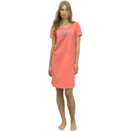 Pohodlná dámská noční košile s krátkým rukávem pro sladké spaní i pro krásné chvíle. Mladistvá noční košile s decentní květinovou mašlí na přední části. Kruhovým výstřih a krátké rukávy jsou lemovány květinovou paspulkou. Tato košile je vyrobena z vysoce kvalitní, genetický nemodifikované 100 % přírodní řecké bavlny, která poskytuje vysoké pohodlí, příjemný pocit na dotek, prodyšnost a odolnost. Délka noční košile 95 cm.