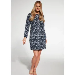 Dámská bavlněná noční košile od značky Cornette. Noční košile má dlouhé rukávy a je volného střihu. Celoplošně má jemný potisk. Je ze 100% bavlny, proto je velmi příjemná a pohodlná.