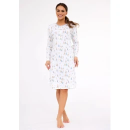 Elegantní a pohodlná dámská noční košile z kvalitní 100% bavlny, vhodná i pro kojící maminky, je vyrobena z měkké vzorované bavlněné látky, která je příjemná na dotek a vhodná pro každodenní nošení během spánku. Košilka má výstřih se zapínáním na patentky. Délka košilky je nad kolena. Vhodná pro kojící matky díky snadnému rozepnutí v přední části. Vhodná jako domácí oděv nebo noční prádlo.