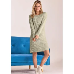 Dámská vzorovaná noční košile italské značky Infiore. Fleecová košile má dlouhý rukáv, který je ukončený úplety. Délka košile je nad kolena. Košile má légu na tři knoflíky. Košile je ušitá z velmi příjemného hřejivého materiálu.