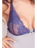 Dámská noční košile Lily Světle šedá s modrou - EWANA