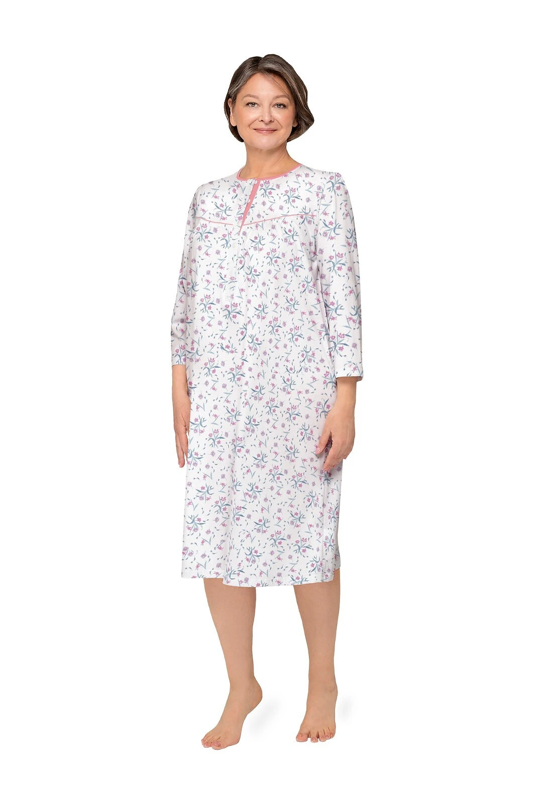 Dámská noční košile s dlouhými rukávy.