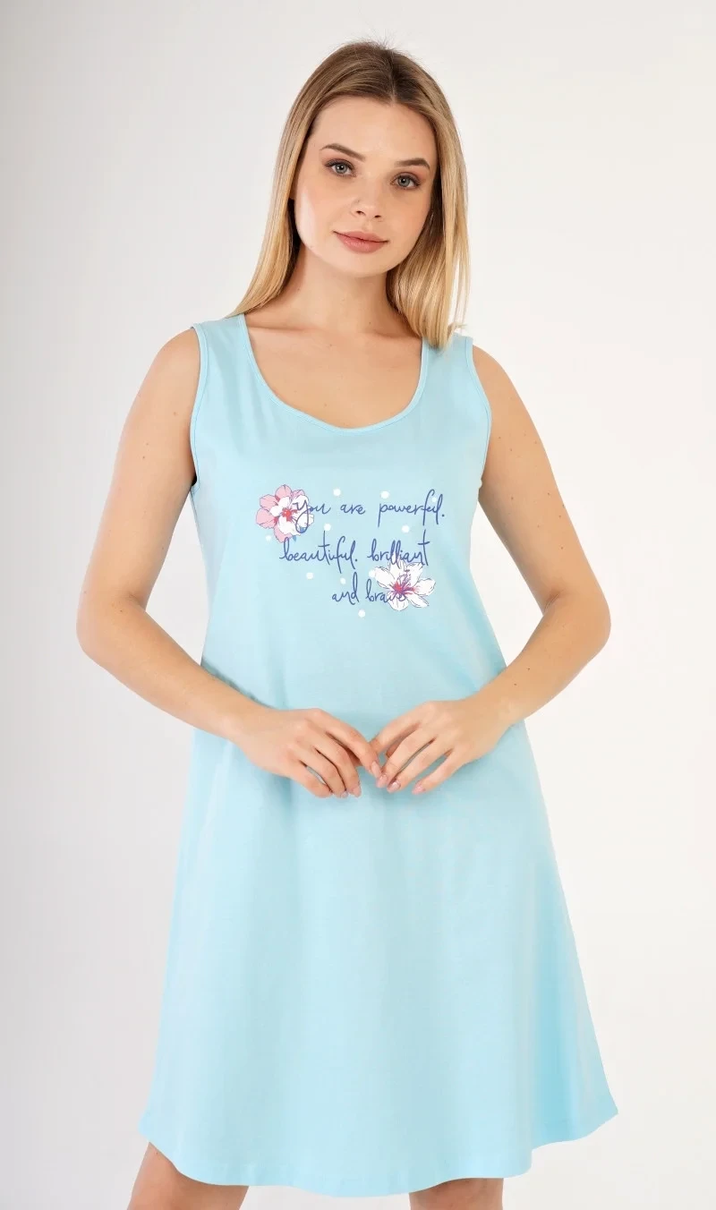 Dámská bavlněná noční košile na ramínka Ellie. Dámská noční košilka se širokými ramínky působí díky floristickému potisku na jemném barevném podkladu veselým a hravým dojmem. Použitý materiál je příjemný a poddajný na dotek. Košile je vhodná i jako letní a plážové šaty díky složení materiálu - 100% bavlny.