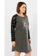 Dámská noční košile s dlouhým rukávem The moon. Noční košile má na hrudi obrázek měsíce. Astro motivy se opakují i na rukávech. Použitý materiál s obsahem bavlny 70% je příjemný a poddajný na dotek.