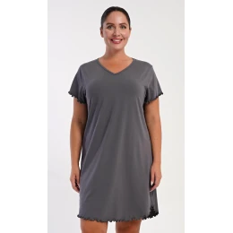 Dámská bavlněná noční košile s krátkým rukávem Alexandra. Košile má příjemnou délkou nad kolena a výstřih do V, je ozdobena žlábkováním na rukávech a spodním lemu. Použitý materiál s podílem bavlny 95% je příjemný a poddajný na dotek.