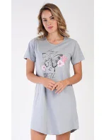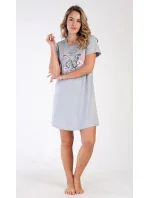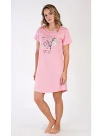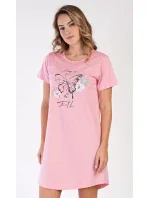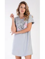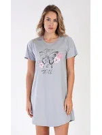 Dámská bavlněná noční košile s krátkým rukávem Butterfly. Dámská noční košile s kulatým výstřihem je jednobarevná, na hrudi má nápis 'Keep up your faith' a obrázek motýla. Použitý materiál s obsahem bavlny 100% je příjemný a poddajný na dotek.