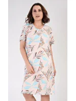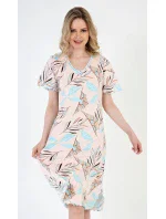 Dámská bavlněná noční košile s krátkým rukávem Edita. Dámská noční košilka pro všechny milovníky retra a starých časů s příjemnou délkou pod kolena a ozdobným žlábkováním kolem výstřihu, rukávů a spodního lemu, který je ozvláštněn rozparkem. Na látce košile jsou natištěny florální motivy s větvičkami. Použitý bavlněný materiál je jemný a poddajný na dotek.