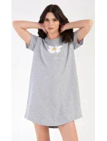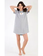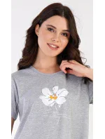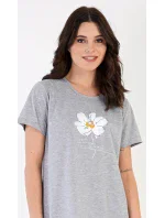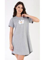 Dámská noční košile s krátkým rukávem Helena. Noční košile s kulatým výstřihem má na hrudi obrázek květu a drobný nápis. Použitý materiál s obsahem bavlny 70% je příjemný a poddajný na dotek.