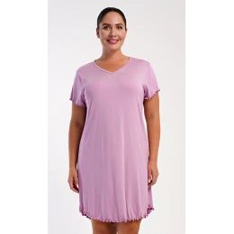 Dámská bavlněná noční košile s krátkým rukávem Liliana. Košile má příjemnou délkou nad kolena a výstřih do V, je ozdobena žlábkováním na rukávech a spodním lemu. Použitý materiál s podílem bavlny 95% je příjemný a poddajný na dotek.