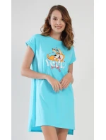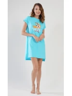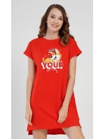 Dámská bavlněná noční košile s krátkým rukávem Love your self. Noční košilka s efektem ohrnutých rukávů má na hrudi obrázek roztomilého pejska obklopeného srdíčky, ležícího na nápisu Love your self. Použitý bavlněný materiál je příjemný a poddajný na dotek.