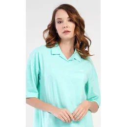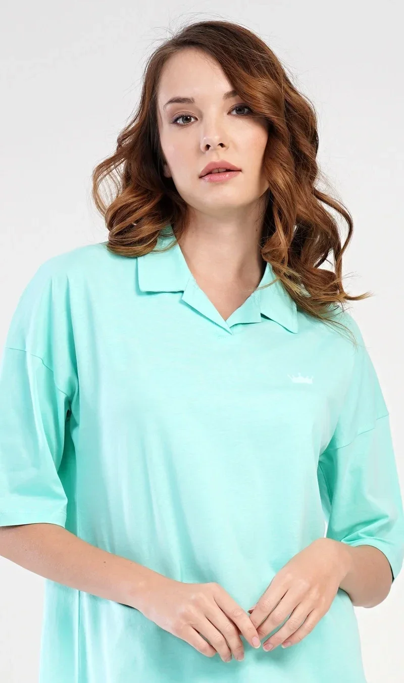 Dámská bavlněná noční košile s krátkým rukávem Martina. Noční košile je košilového typu s mírně prodlouženým zadním dílem. Výstřih je s klasickým límečkem. Na hrudi je vytištěná malá korunka. Použitý bavlněný materiál je příjemný a poddajný na dotek.