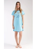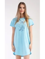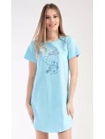 Dámská bavlněná noční košile s krátkým rukávem Méďa s kytkou. Noční košili s kulatým výstřihem zdobí obrázek medvídka, který za zády drží kytici květů. Použitý bavlněný materiál je příjemný a poddajný na dotek.