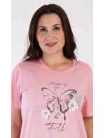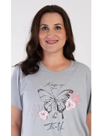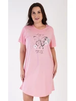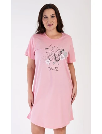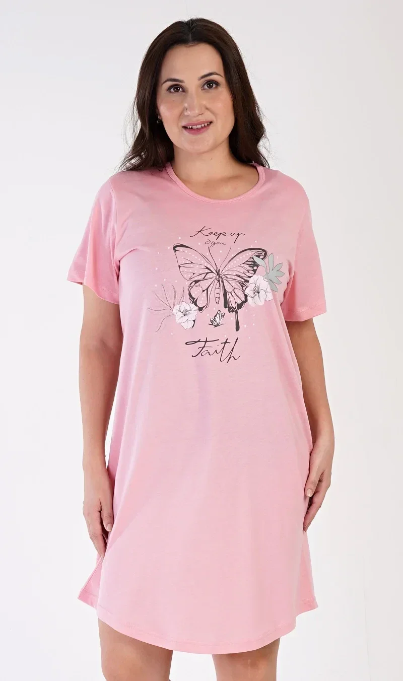 Dámská bavlněná noční košile s krátkým rukávem Motýl. Dámská noční košile s kulatým výstřihem je jednobarevná, na hrudi má nápis 'Keep up your faith' a obrázek motýla. Použitý materiál s obsahem bavlny 100% je příjemný a poddajný na dotek.