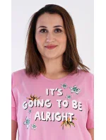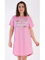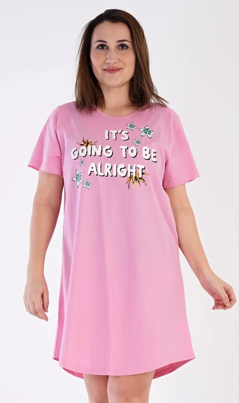 Dámská bavlněná noční košile s krátkým rukávem Sabina. Noční košile s kulatým výstřihem a příjemnou délkou nad kolena má na hrudi nápis IT'S GOING TO BE ALRIGHT a drobné květy. Použitý materiál s obsahem bavlny 100% je příjemný a poddajný na dotek.