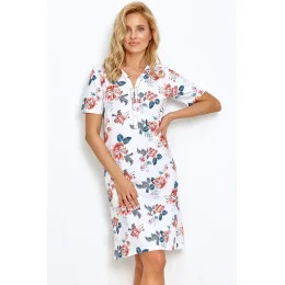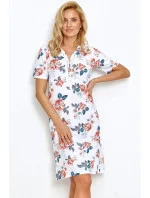 Dámská noční košilka 2880 Scarlett TARO - bílá barva - z velmi kvalitní bavlny - s krátkými rukávy - s modro-červeným vzorem - zapínání na knoflíky - délka ke kolenům