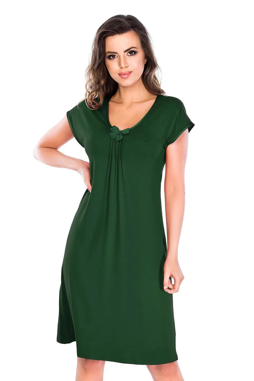 Košile je vyrobená z velmi kvalitní viskózy s přídavkem elastanu. Půlkulatý výstřih je obšitý saténovou lemovkou, ozdobený mašličkou a jemným nařasením.