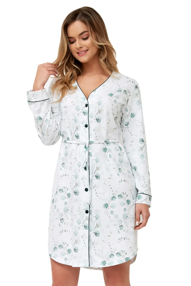 Vzorovaná dámská noční košile se zapínáním na knoflíčky.