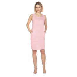 Dámská noční košilka 128 pink REGINA - růžová barva - z vysoce jakostní bavlny - pruhovaná - široká ramínka - pohodlné kapsy na bocích