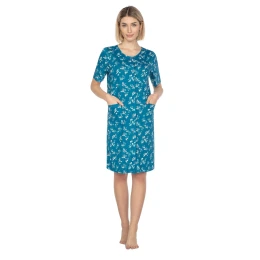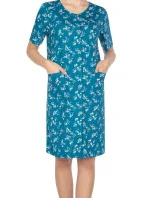 Dámská noční košilka 129 green REGINA - zelená barva - z vysoce jakostní bavlny - krátké rukávy - s květinovým motivem - zapínání na knoflíky - s kapsami