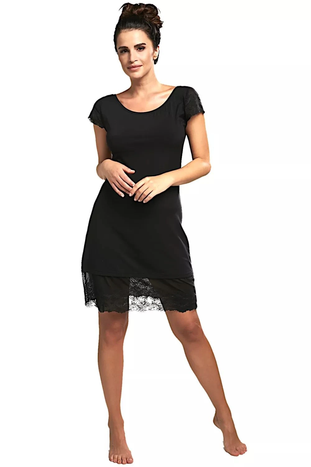 Dámská noční košile 158/189 Estelle Cornette - vyrobená z velmi kvalitní bavlny - černá barva - průstřih na zádech - krátké rukávy s jemnou výšivkou - délka nad kolena
