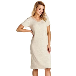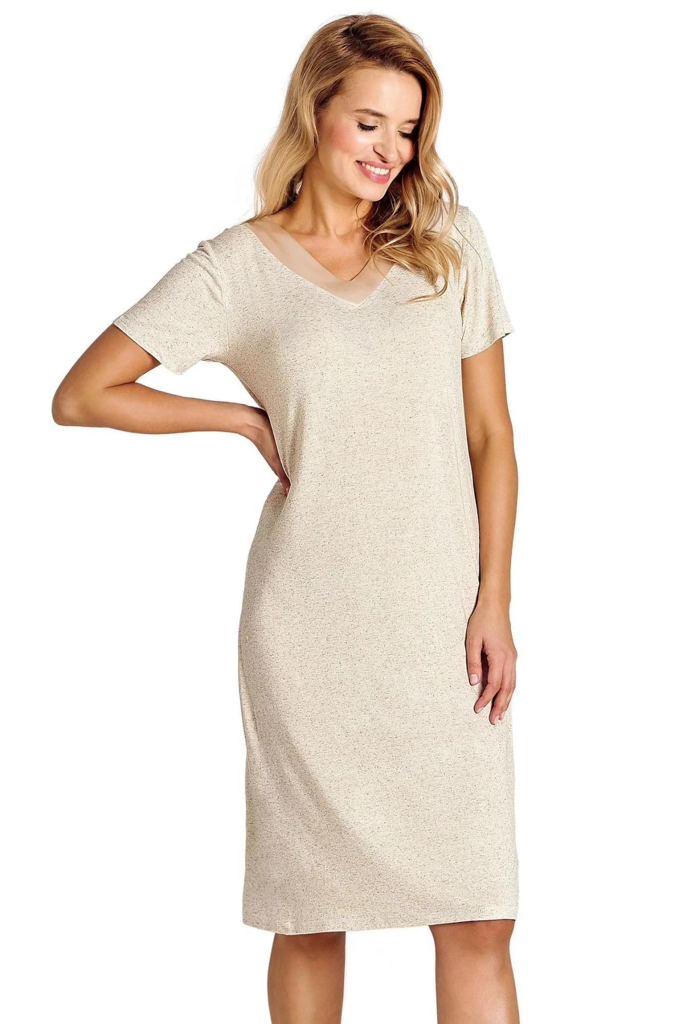 Dámská noční košilka 3130 Eden TARO - béžová barva - z vysoce kvalitní viskózy - výstřih se saténovým lemováním - krátké rukávy