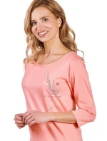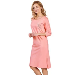 Dámská noční košilka 3242 Ashley TARO - růžová barva - z vysoce jakostní bavlny - na přední straně zdobená potiskem - tříčtvrteční rukávy - lemy rukávů a spodní části zakončené jemným řasením