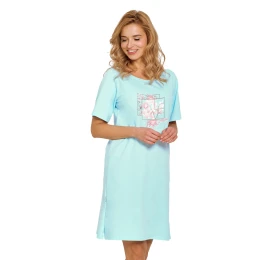 Dámská noční košilka 3327 Isla pink TARO - růžová barva - z vysoce jakostní bavlny - krátké rukávy - zdobená potiskem na přední straně