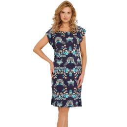 Dámská noční košilka 3330 Jodie TARO - tmavě modrá barva - z vysoce jakostní bavlny - květinový vzor - krátké rukávy - půlkulatý výstřih