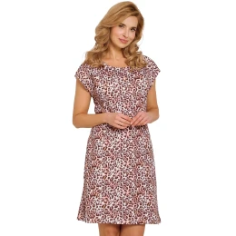 Dámská noční košilka 3348 Esti TARO - hnědá barva - z vysoce jakostní bavlny - exotický vzor - krátké rukávy - půlkulatý výstřih