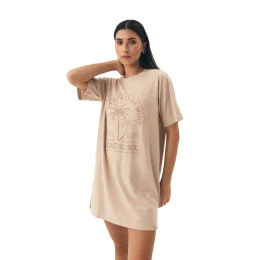 Dámská noční košilka 42671 Nules HENDERSON - béžová barva - z vysoce jakostní bavlny - krátké rukávy - zdobené potiskem na přední straně - rozparek na spodní části