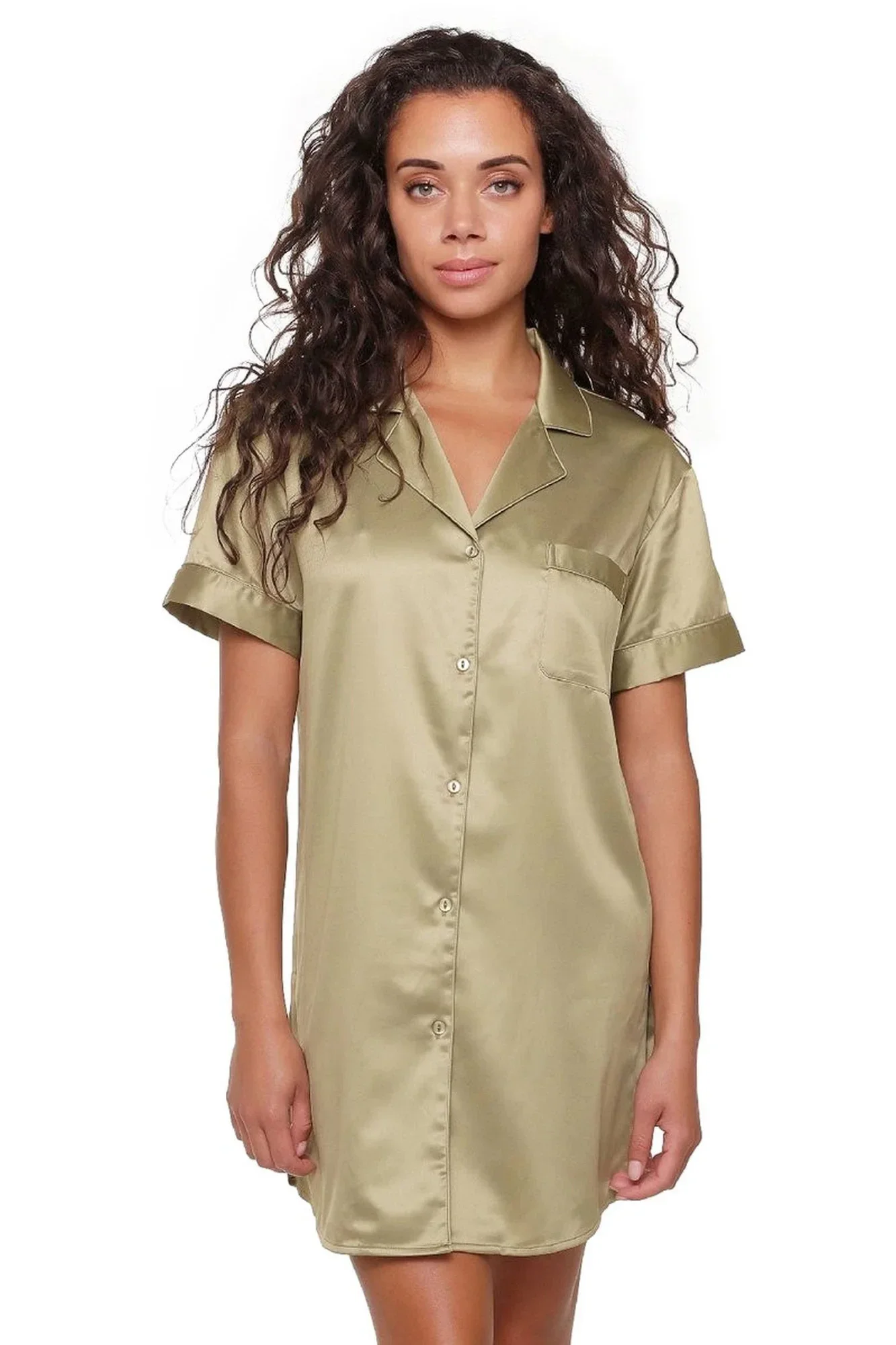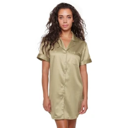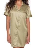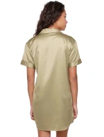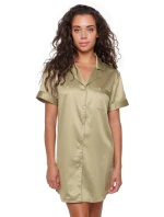 Dámská noční košilka 6801 green LingaDore - olivová barva - z velmi hladkého saténu - krátké rukávy - na přední straně kapsička - zapínání na knoflíky