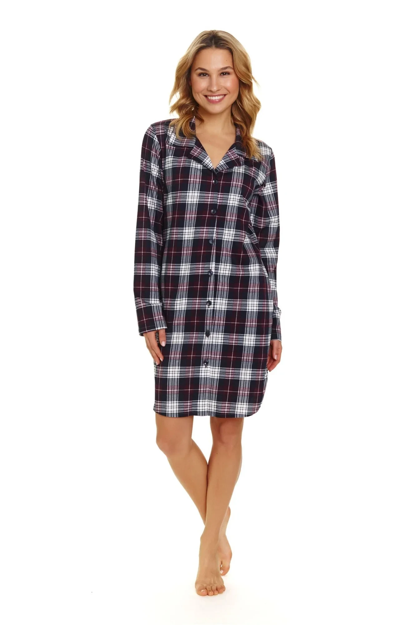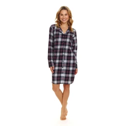 Dámská noční košilka 7103 Doctornap - vínová barva - z vysoce jakostní bavlny - vzor káro - košilový typ - s límečkem - zapínání na knoflíky