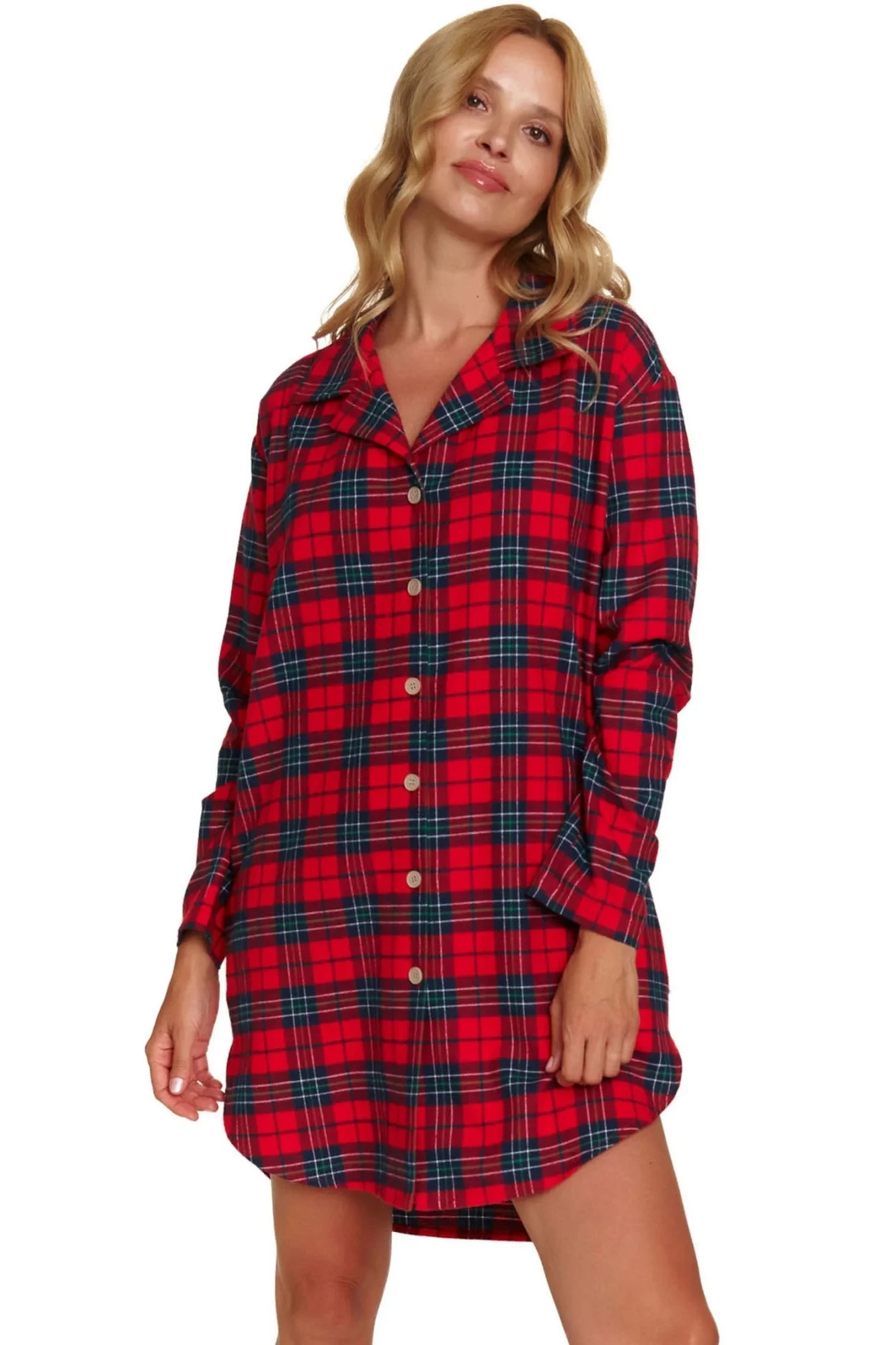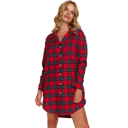Dámská noční košilka 7126 Doctornap - červená barva - z vysoce jakostní bavlny - kostkovaný vzor - košilový typ - zapínání na knoflíky - dlouhé rukávy - certifikát OEKO-TEX Standard 100