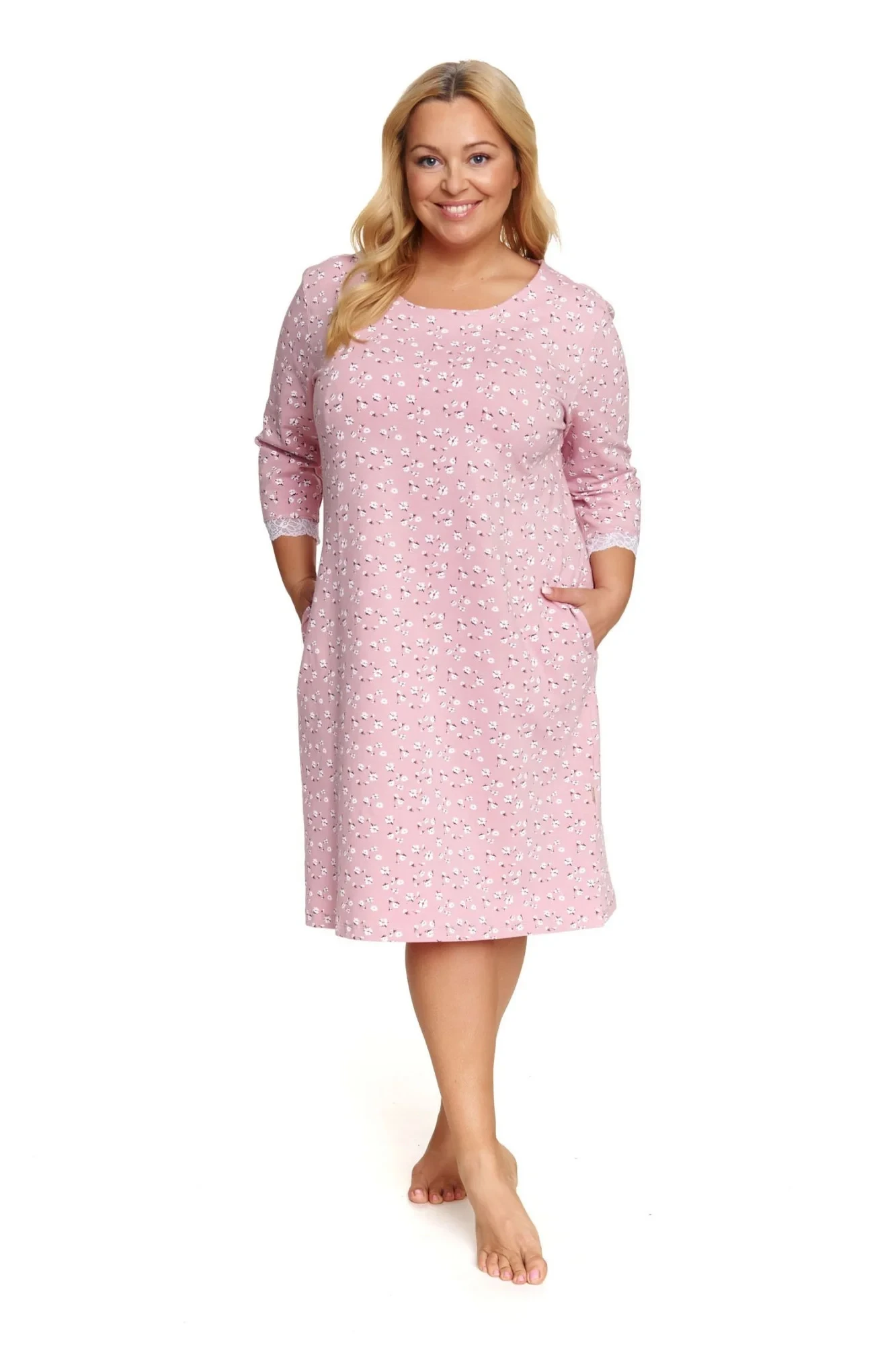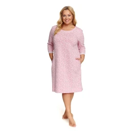 Dámská noční košilka 7152 Doctornap - růžová barva - z vysoce jakostní bavlny - se vzorem - tříčtvrteční rukávy - kapsy na bocích - kontrastní lemování na rukávech