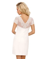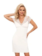 Vrchní linie poprsí a rukávky jsou ušité z ažurové krajky s květinovým motivem. Košilka se směrem dolů lehce rozšiřuje. Model má délku nad kolena.