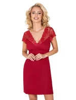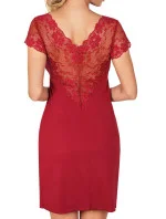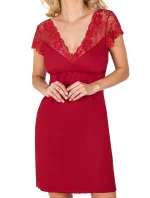 Dámská noční košilka Ismena wine Donna - bordó barva - z vysoce jakostní viskózy - krátké krajkové rukávy - pod prsy je nařasená - krajková záda