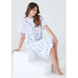 Romantická dámská noční košilka Karelpiu vyniká jemným květinovým potiskem a pohodlným volným střihem. Je vyrobena z příjemné a prodyšné bavlny, která zajišťuje maximální komfort během spánku. Košilka má krátké rukávy, kulatý výstřih a praktické zapínání na knoflíčky, díky čemuž je vhodná i pro kojící maminky. Tento model nabízíme ve dvou variantách – s modrými květy a s růžovými květy. Ideální volba pro ženy, které hledají spojení elegance a pohodlí.