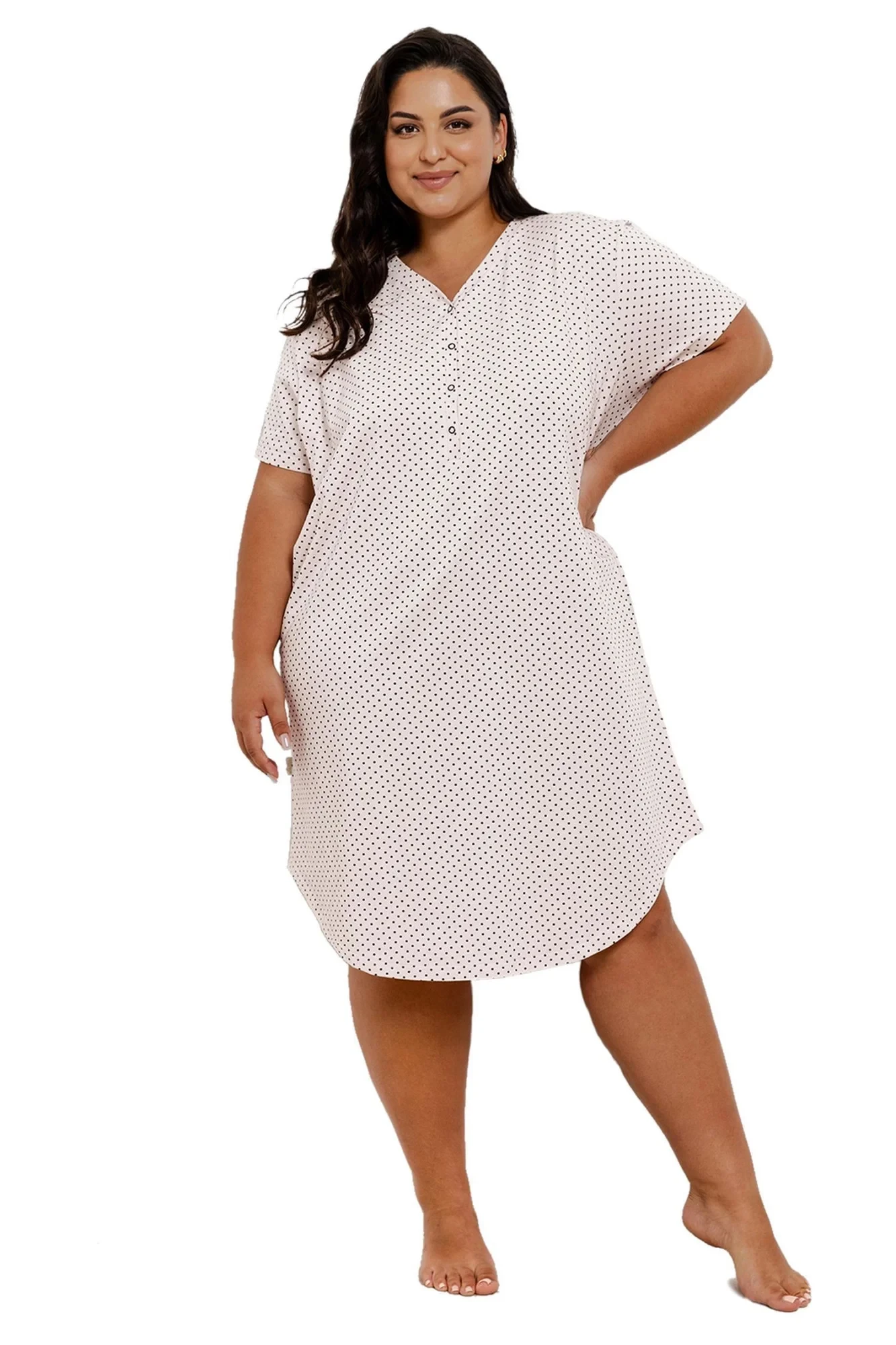Dámská noční košilka Meg 3367 pink TARO - růžová barva - z vysoce jakostní bavlny - zdobená černými puntíky - výstřih do V se zapínáním na patentky - krátké rukávy