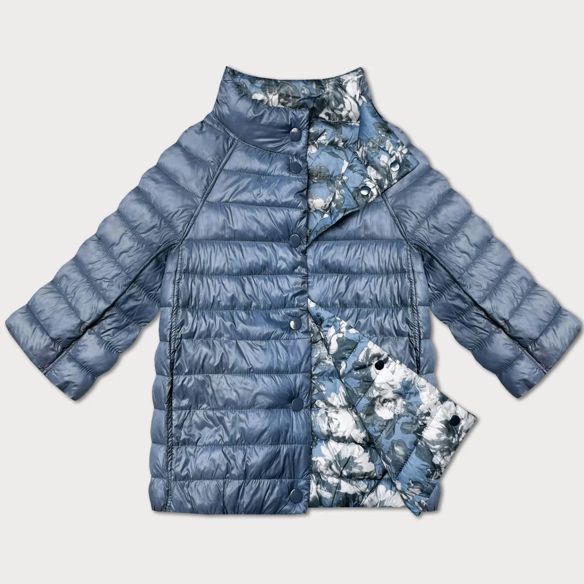 Dámská oboustranná bunda s 3/4 rukávy Minority tmavě modrá/květinová (M23-7009-30S)