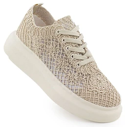 Dámská obuv na platformě se šněrováním béžová Vinceza 17371