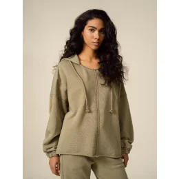 Tepláková mikina s neopracovaným prošíváním a mírně zkráceným spodním lemem. Kapuce se stahovací šňůrkou. Volný střih a měkká látka se sepraným efektem vám zajistí každodenní pohodlí.