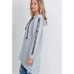 Tmavě šedá krátká dámská mikina s nápisy (26014)