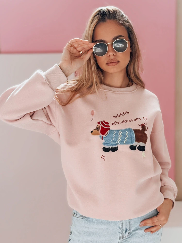 Dámská oversize mikina s výšivkou DOGSWEETY růžová FashionStreet BY1482