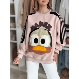 Tato dámská oversize mikina s kulatým výstřihem a výrazným vzorem nášivek ve tvaru kachny je ideální volbou pro jarní dny. Pohodlný střih s elastickými manžetami a spodním lemem zajišťuje pohodlné nošení, zatímco ozdobné pruhy na rukávech dodávají sportovní nádech. Univerzální velikost se hodí pro velikosti od XS do L. Hodí se ke každodenním i ležérním outfitům.