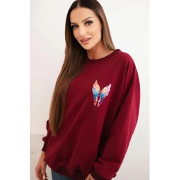 Dámská oversized mikina z bavlny s barevnými křídly na zádech bordová